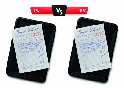 - Kalkulation der Speisenpreise: Gastronomen müssen zunächst prüfen, wie viele ihrer Speisen von der MwSt.-Erhöhung betroffen sind. Während die MwSt. für das Liefergeschäft bei 7 % bleibt, müssen Preise für den Restaurantbesuch mit 19 % MwSt. angepasst werden. Bei einem hohen Anteil des Liefergeschäfts könnte es sinnvoll sein, zwei Speisenkarten mit unterschiedlichen Preisen anzubieten. Falls dieselben Preise für beide Verzehranlässe gelten, muss der Gastronom berechnen, wie viel Prozent des Umsatzes durch Lieferungen generiert wird. Die Preiserhöhung ergibt sich dann aus der Mischkalkulation für beide Verzehranlässe.